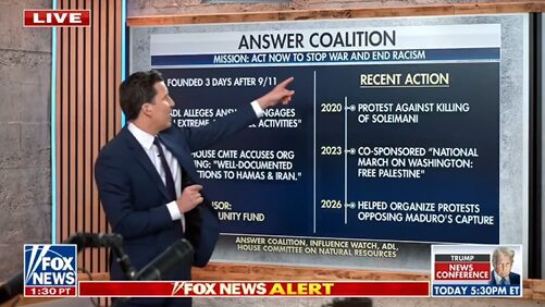 در برنامه Will Cain Show گفته شد چند سازمان فعال در اعتراضات ضد جنگ و ضد سیاستهای دولت آمریکا، در تجمعهای مرتبط با ایران نیز نقش داشتهاند. از جمله گروههایی مانند ANSWER Coalition، Code Pink و The People’s Forum که در سالهای گذشته در اعتراضات مختلف سیاسی حضور داشتهاند.