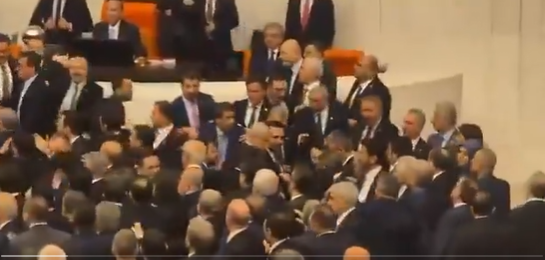 ویدیوی منتشرشده از پارلمان ترکیه نشان میدهد جلسه امروز به صحنه درگیری فیزیکی میان برخی نمایندگان تبدیل شده است.