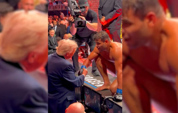 کاستا پس از پیروزی در رقابتهای UFC در میامی، از قفس خارج شد و با ترامپ دیدار و دست داد.